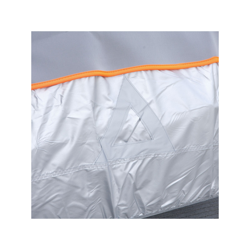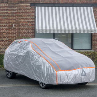 3- Protección reforzada y fácil instalación : Para un cuidado óptimo, la funda está totalmente forrada con un tejido suave al tacto que protege la carrocería de arañazos. Una banda elástica en toda su longitud proporciona una sujeción adicional y facilita su colocación. Advertencia: no utilices la funda en condiciones de helada, ya que podría pegarse a la carrocería.