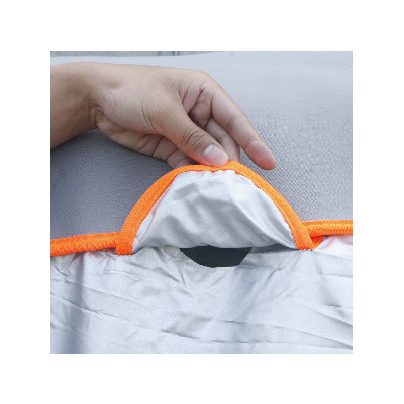 2- Propiedades transpirables : Fabricada en poliéster 100%, esta lona tiene un revestimiento transpirable que evita la acumulación de humedad y la aparición de moho, proporcionando una protección duradera y eficaz.3-Para mayor protección, su funda de coche está totalmente forrada con un tejido suave al tacto.