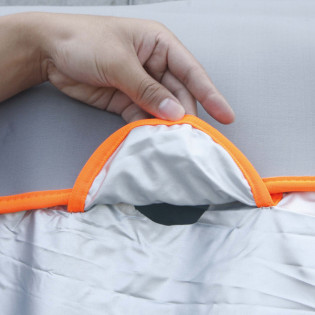 3- Garantizar un ajuste perfecto : Fije los bordes elásticos bajo el chasis para mantener la tela impermeable en su sitio.