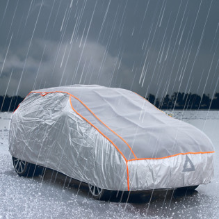 La funda protectora especial para exterior protege frente a nieve y lluvia además de los excrementos de pájaros, hojas y restos de árboles como la resina y de los rayos ultravioleta.