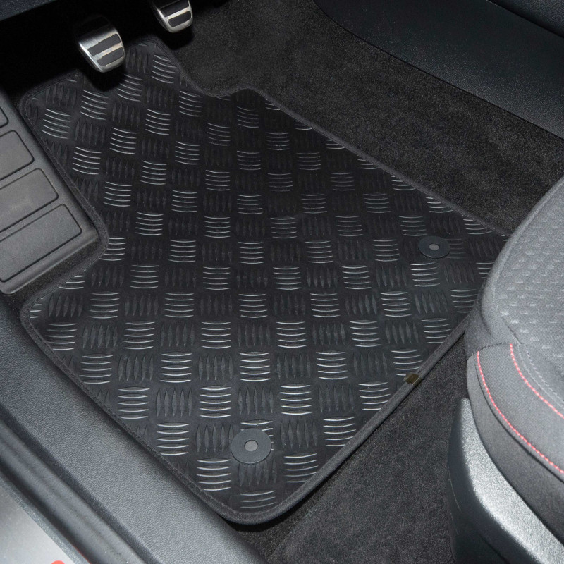 Además, esta adhesividad evita que la suciedad pase por debajo de la alfombrilla de coche. Y, en el caso de las alfombrillas de coche FALCON y las alfombrillas de coche SUPREME, este sistema está presente en todo el juego de alfombrillas.
